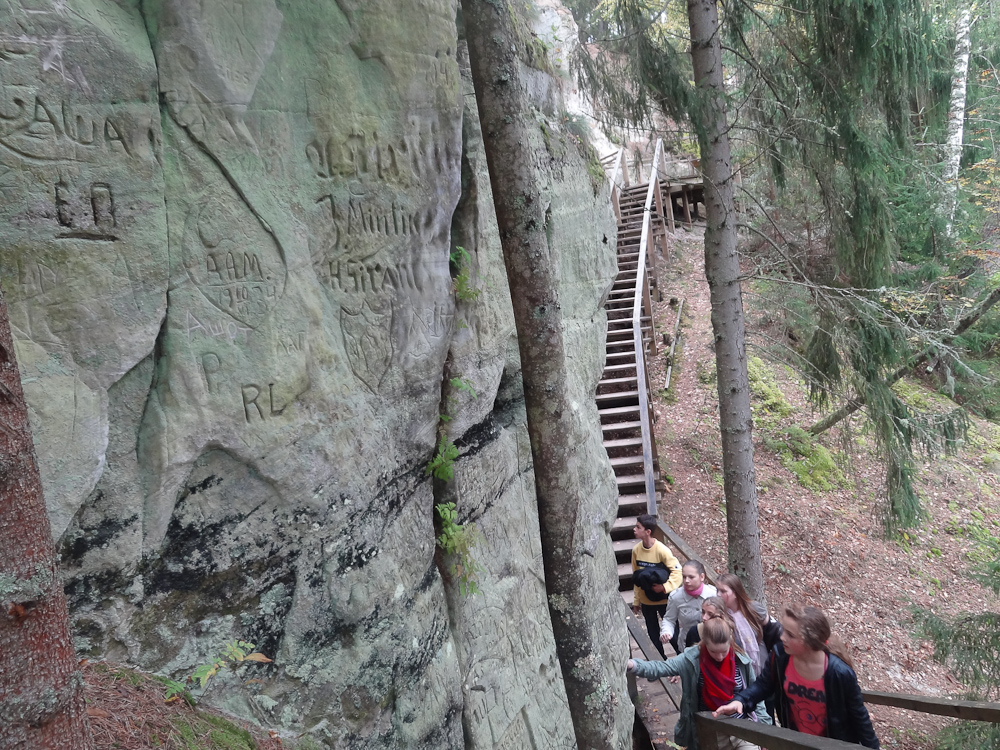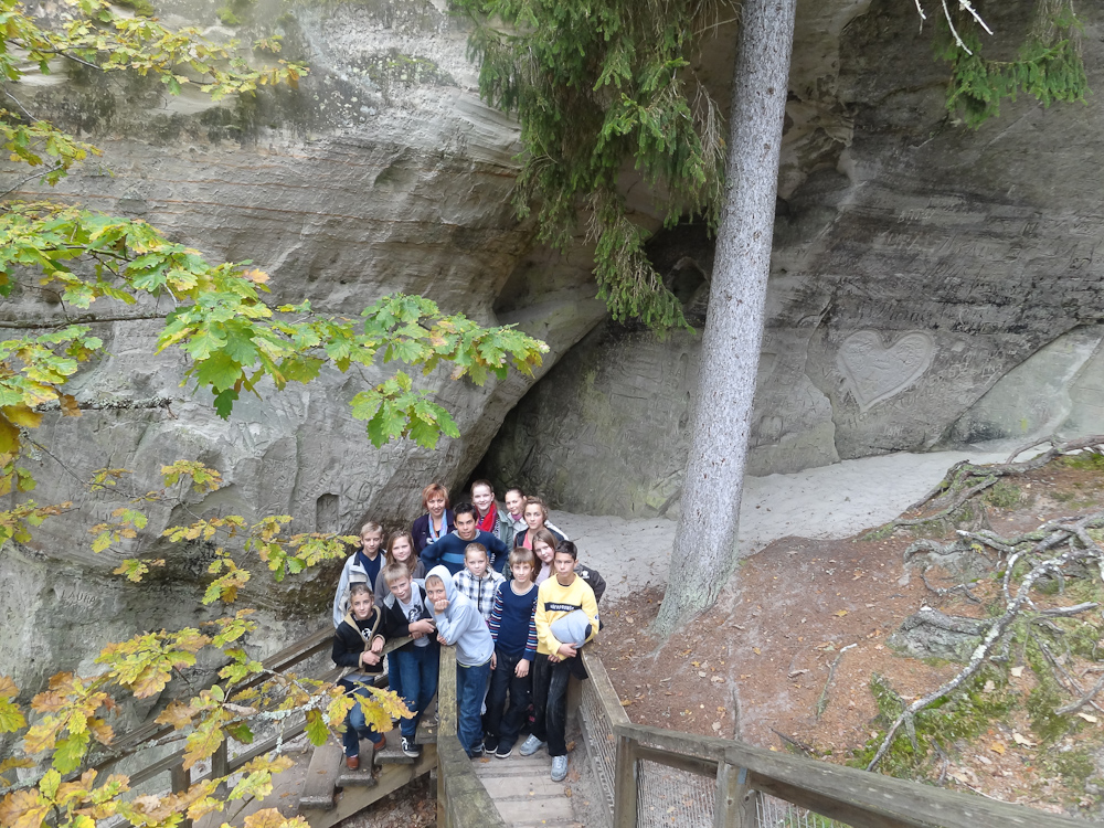 Atvasara ir jābauda dabā, tāpēc mūsu ceļš veda uz Valmieras pusi, un pirmais apskates objekts – gleznainais Sietiņiezis. Tas ir ļoti skaists un iespaidīgs dabas piemineklis, lielākais baltā smilšakmens atsegums Baltijā (15m augsts, 400 m plats), koši balts, bagātīgi izrobots ar daudzām dīvainām formām, alām, stabiem, nišām un arkām. Skolēni ar aizrautību pētīja Sietiņieža veidojumus Gaujas krastā un vienprātīgi piekrita Rūtas apgalvojumam, ka „vislabākais mākslinieks pasaulē ir daba, jo tādus veidojumus cilvēks nespētu radīt.”