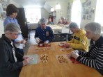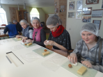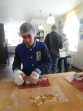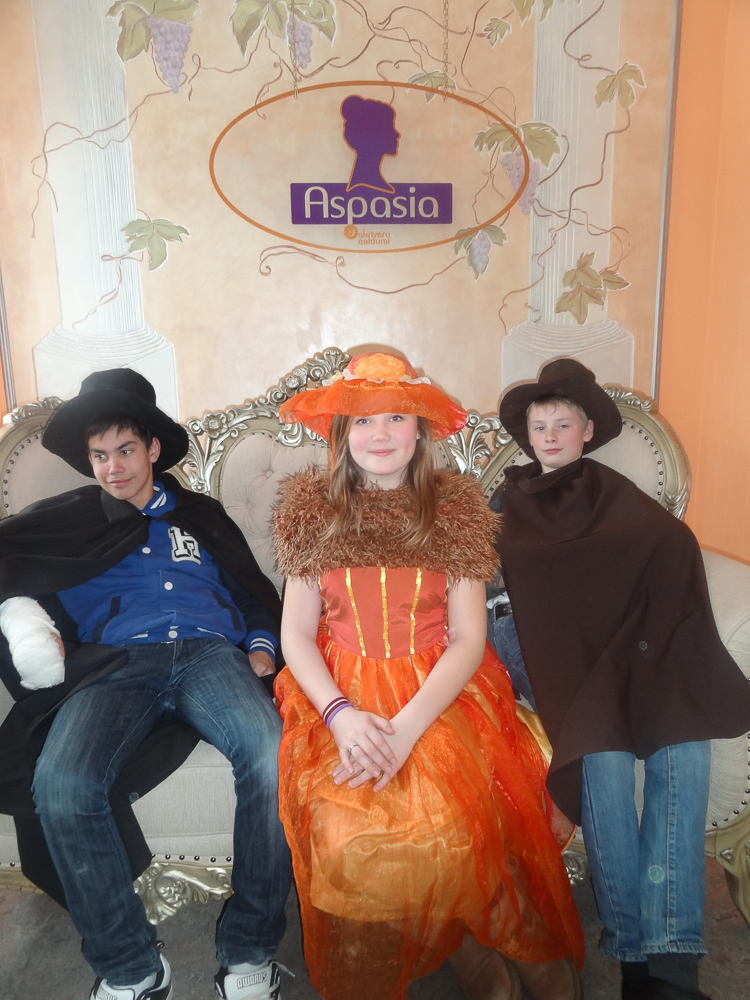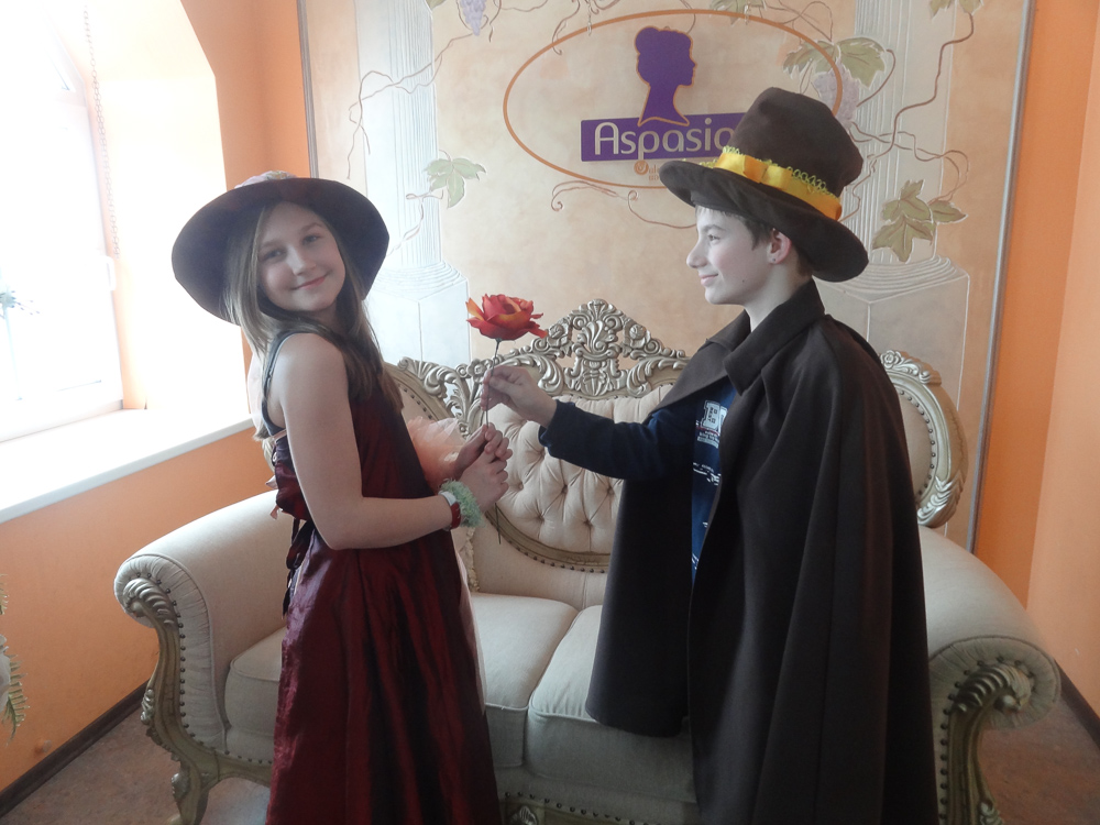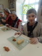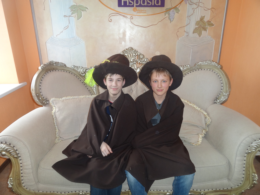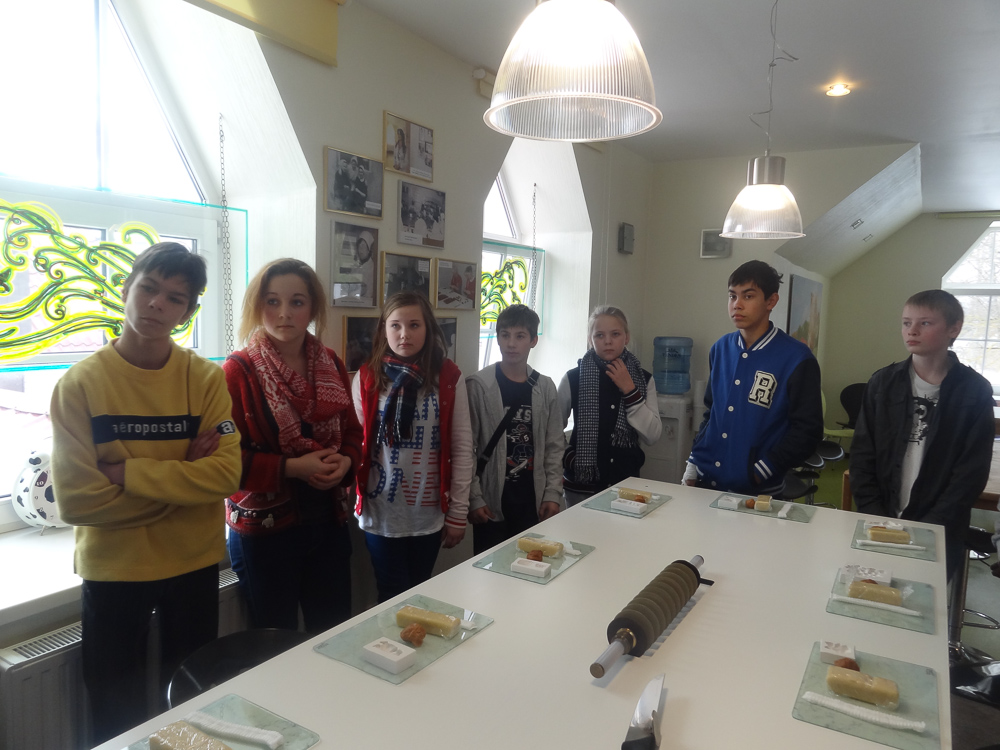 Pirmā pieturvieta mums bija Skrīveros, slavenajā „Gotiņu” ražotnē. No sākuma noskatījāmies filmiņu par to, kā top konfektes „Gotiņa”, īriss un marcipāns. Mums bija iespēja degustēt marcipānu, īrisu, plūmes šokolādē un aprikozes šokolādē. Un tad bija laiks likt lietā savu izdomu un veidot figūriņas no īrisa un marcipāna. Kad darbs bija pabeigts, mēs varējām iejusties baronu un baronešu lomās, pārģērbjoties par tiem.