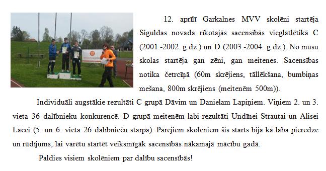 Garkalnes MVV skolēni startē vieglatlētikas sacensībās Siguldā