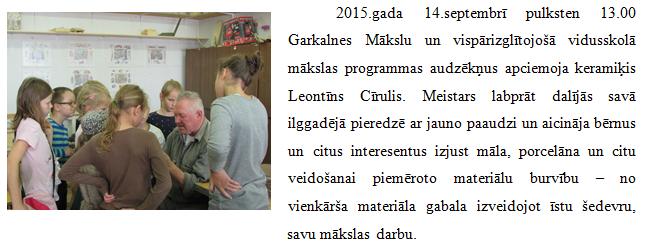 Lasīt vairāk...        Foto galerija: Keramiķa L.Cīruļa meistarklase
