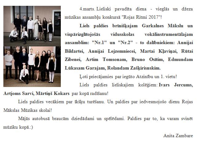 Vieglās un džeza mūzikas vokālinstrumentālo ansambļu konkurss - ROJAS RITMI 2017!