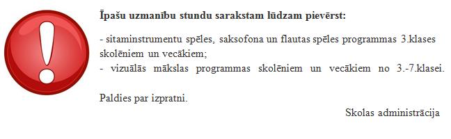 Mainīts stundu saraksts mūzikas un mākslas programmu audzēkņiem