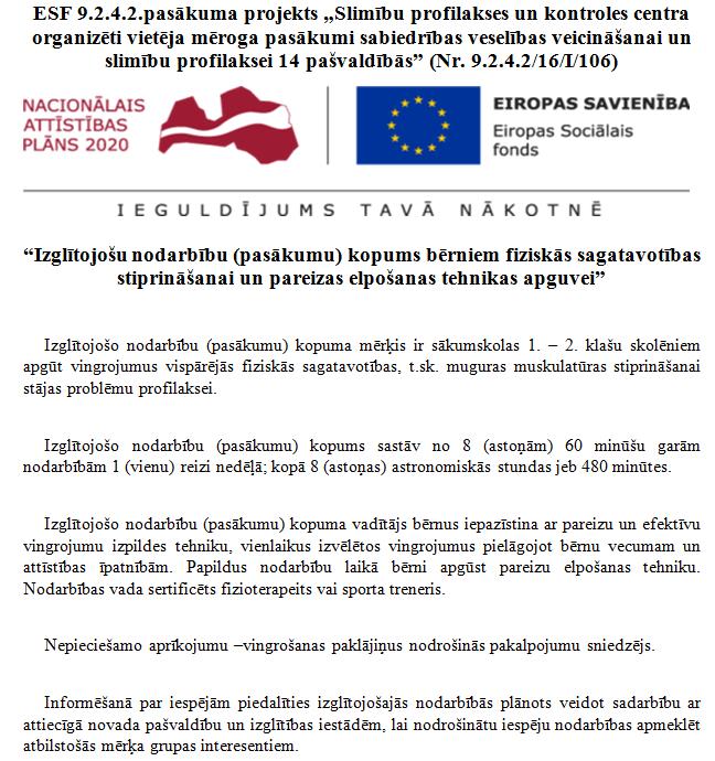 Izglītojošu nodarbību (pasākumu) kopums bērniem fiziskās sagatavotības stiprināšanai un pareizas elpošanas tehnikas apguvei
