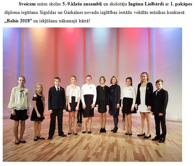 Panākumi vokālās mūzikas konkursā „Balsis 2018”