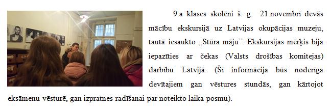 Lasīt vairāk...        Foto galerija: 9.a klases ekskursija