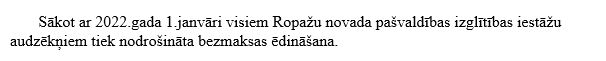 Bezmaksas ēdināšana visiem Ropažu novada pašvaldības izglītības iestāžu audzēkņiem