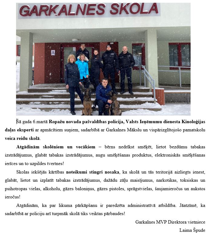 Pašvaldības policijas un kinologu reids skolā