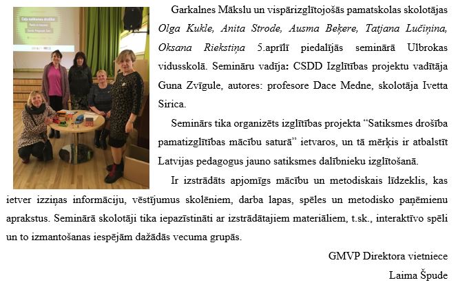 Skolotāji piedalās projekta “Satiksmes drošība pamatizglītības mācību saturā” seminārā