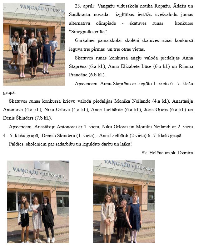 Svešvalodu olimpiāde "Sniegpulkstenīte"