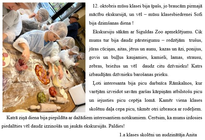 1.a klases ekskursija uz Siguldas Zoo un piedalīšanās picu meistarklasē Rāmkalnos