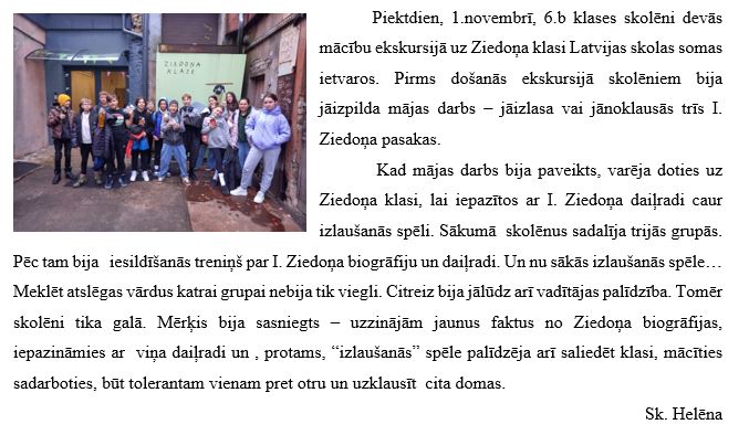 Mācību ekskursija uz Ziedoņa klasi