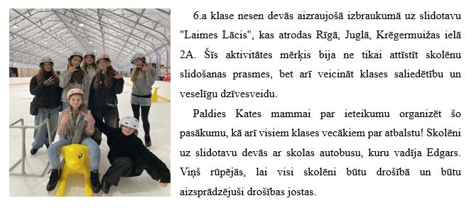 6.a klases slidošanas piedzīvojums slidotavā "Laimes Lācis"