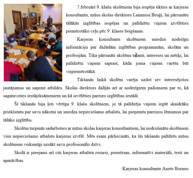 9.klašu skolēni tiekas ar karjeras konsultantu