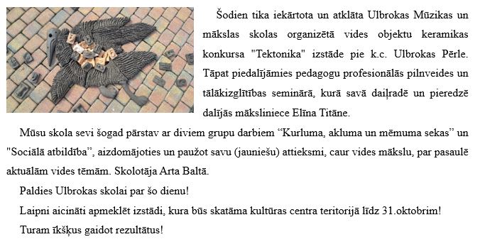 Vides objektu keramikas konkursa "Tektonika" izstāde