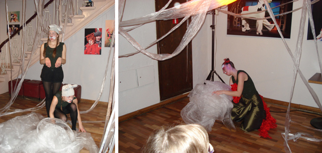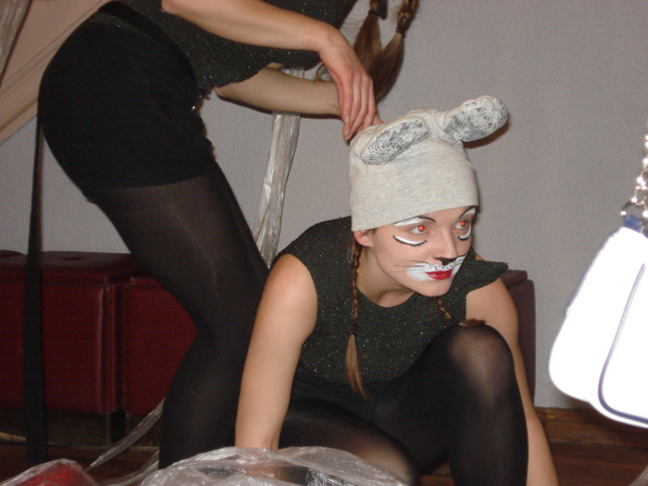 Likās, ka izrāde tikko sākusies un pēkšņi.... jau starpbrīdis. Tavu brīnumu! Starpbrīdī Leļļu teātra foajē pārvērties par skatuvi! Visi iestudējuma tēli ir gatavi iepriecināt mazos skatītājus, kontaktēties ar ikvienu, smīdināt un arī nobiedēt! Savdabīgās instalācijas deva sajūtu, ka mēs, visi skatītāji, esam cimdiņa iemītnieki.
