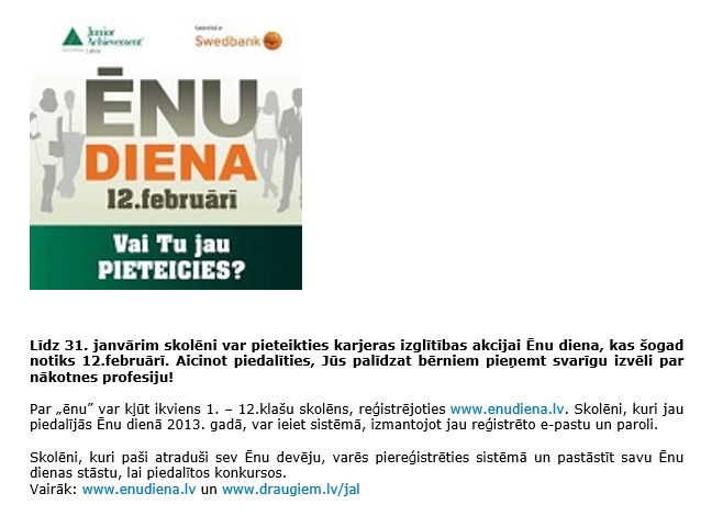 Skolēni aicināti pieteikties ēnu dienai!